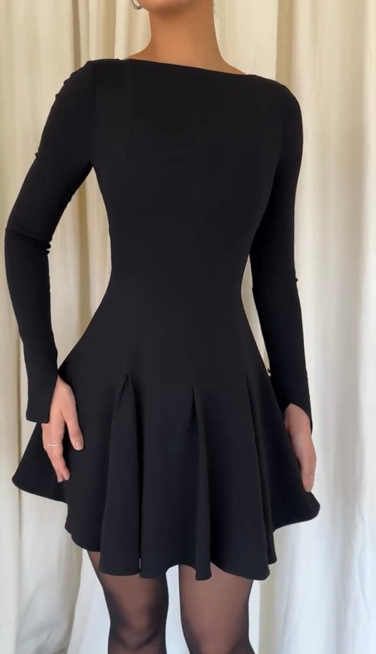 Sexy Langarm U-Ausschnitt Geraffter Plissierter Rock
