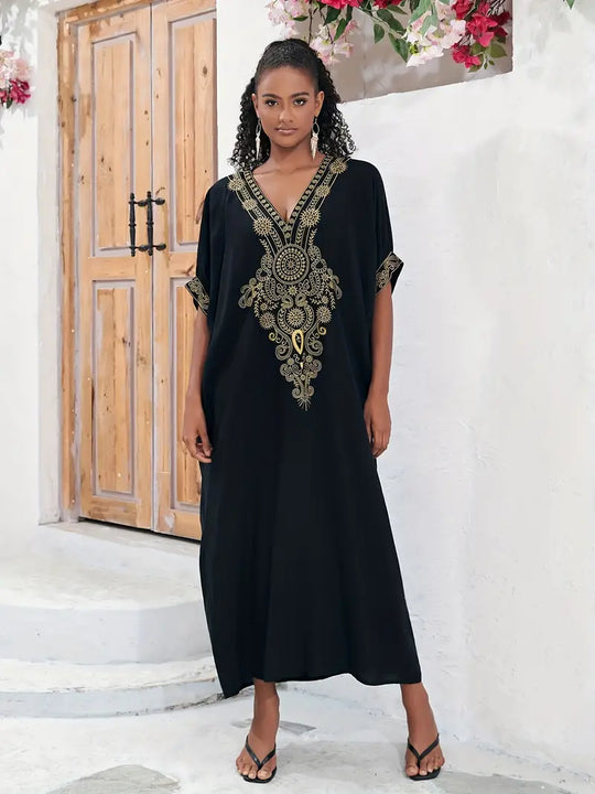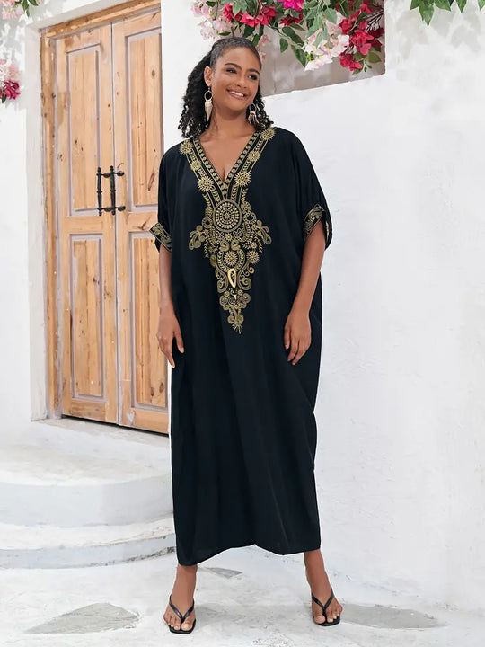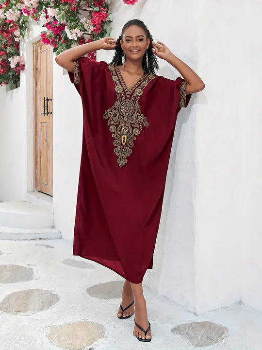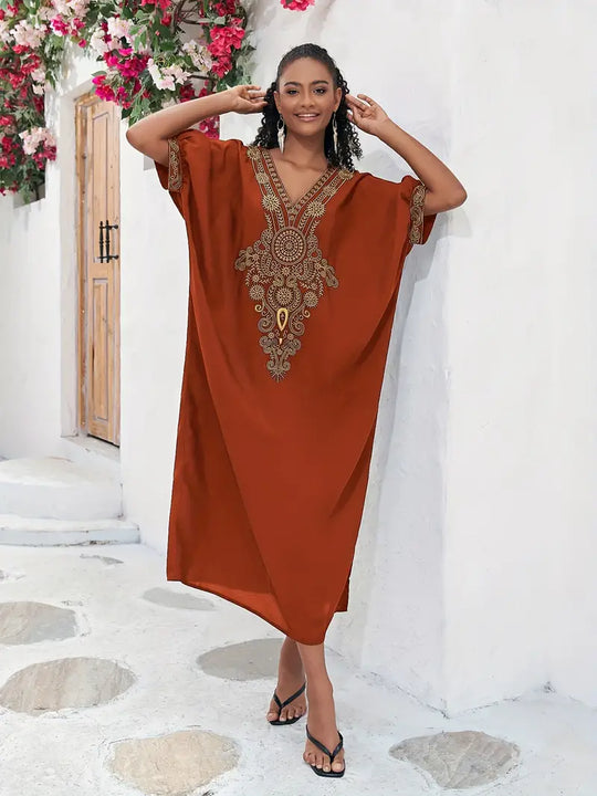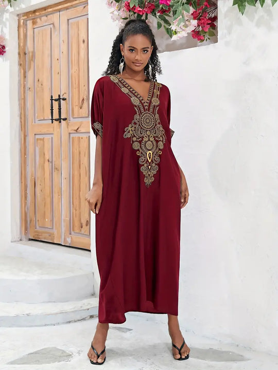 Übergroßes Kleid mit geometrischem Boho-Print. Dieses auffällige Kleid kombiniert eine übergroße Passform mit einem auffälligen geometrischen Print für einen stilvollen Boho-Look. Es ist aus leichtem und luftigem Material für ultimativen Komfort gefertigt. Dieses Kleid eignet sich sowohl für legere als auch für festliche Anlässe und bietet einen mühelosen und eleganten Look. Ergänzen Sie Ihre Garderobe mit diesem einzigartigen Stück für ein trendiges und bequemes Bohème-Flair!
