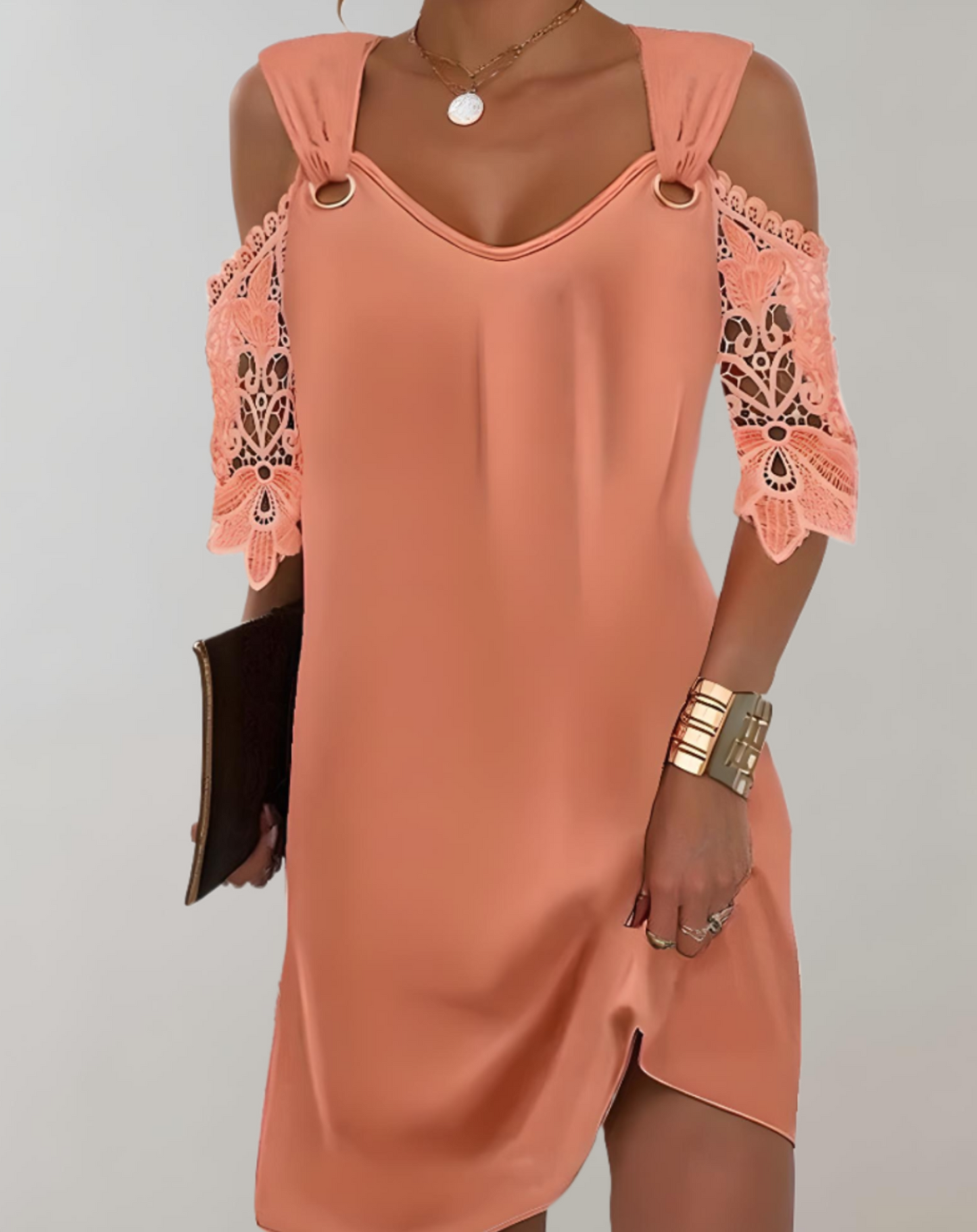 Cataleya | Knielanges Kleid mit ausgeschnittenen Spitzenärmeln und tiefem Rundhalsausschnitt