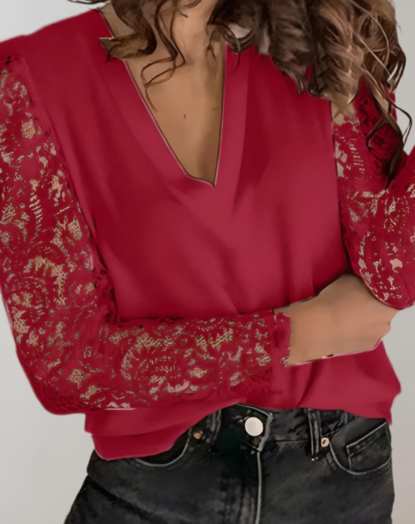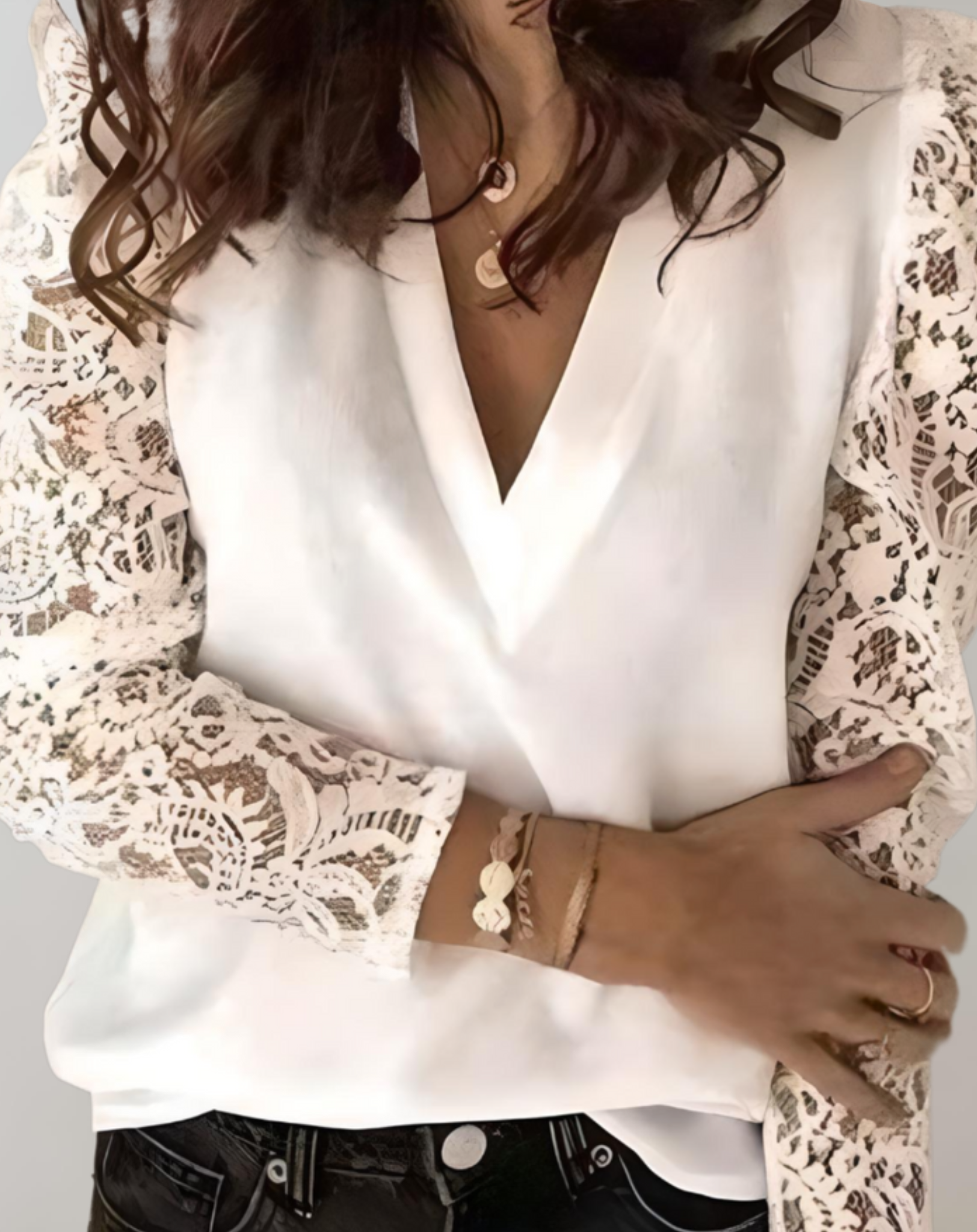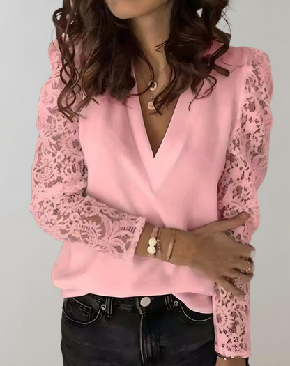 Loraine | Top mit tiefem V-Ausschnitt und langen Ärmeln mit Spitzenmotiv
