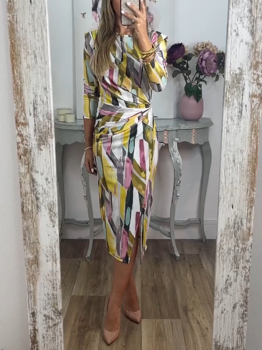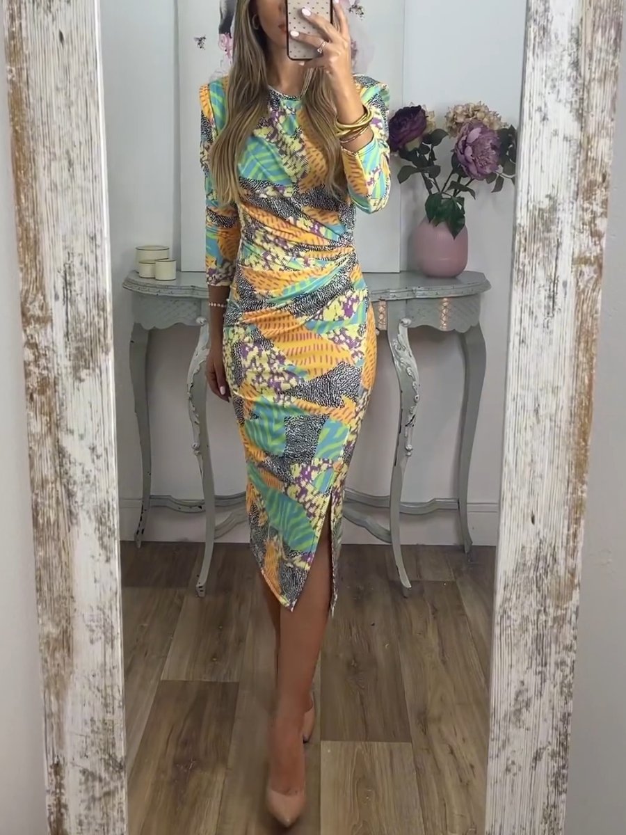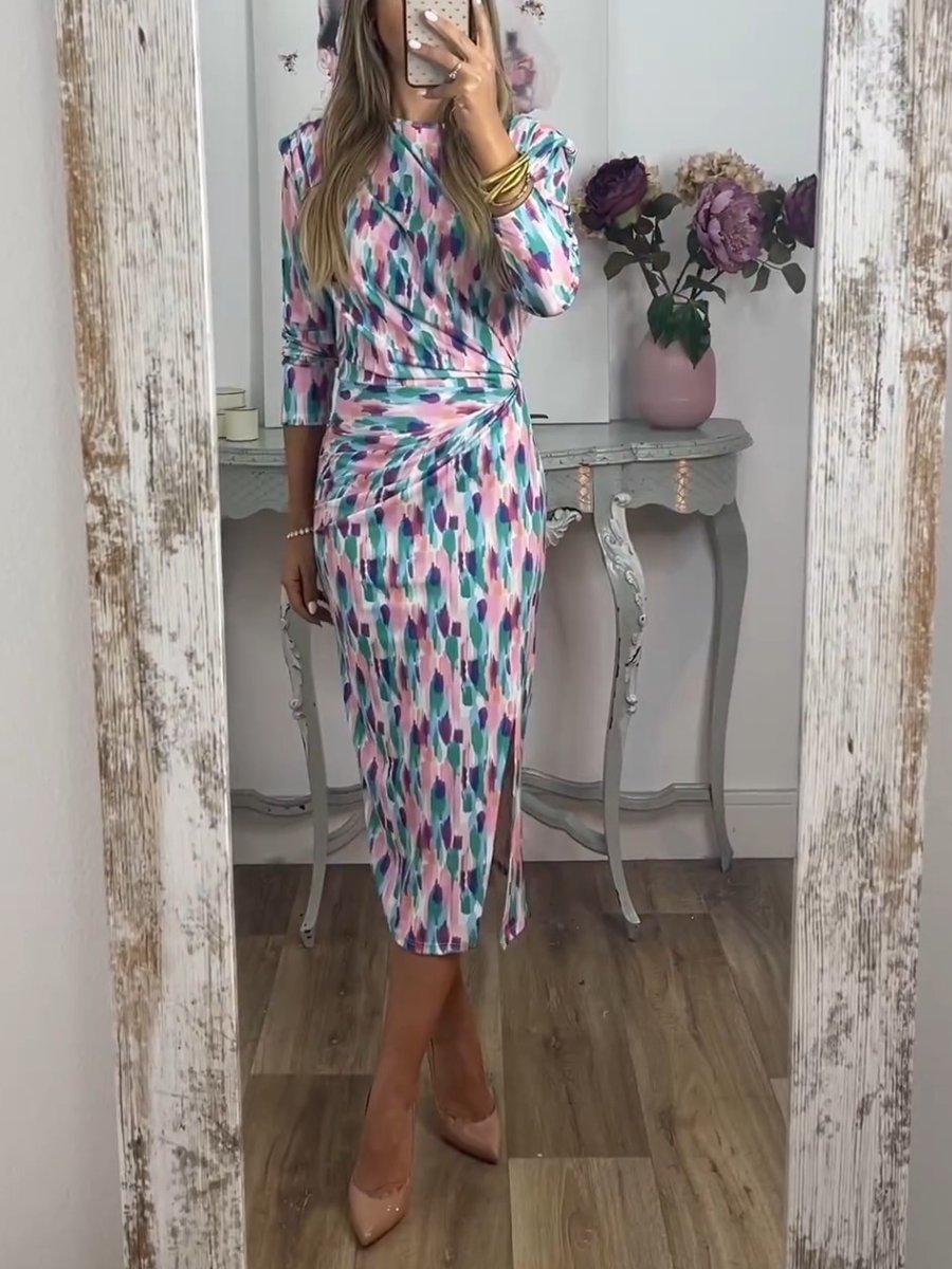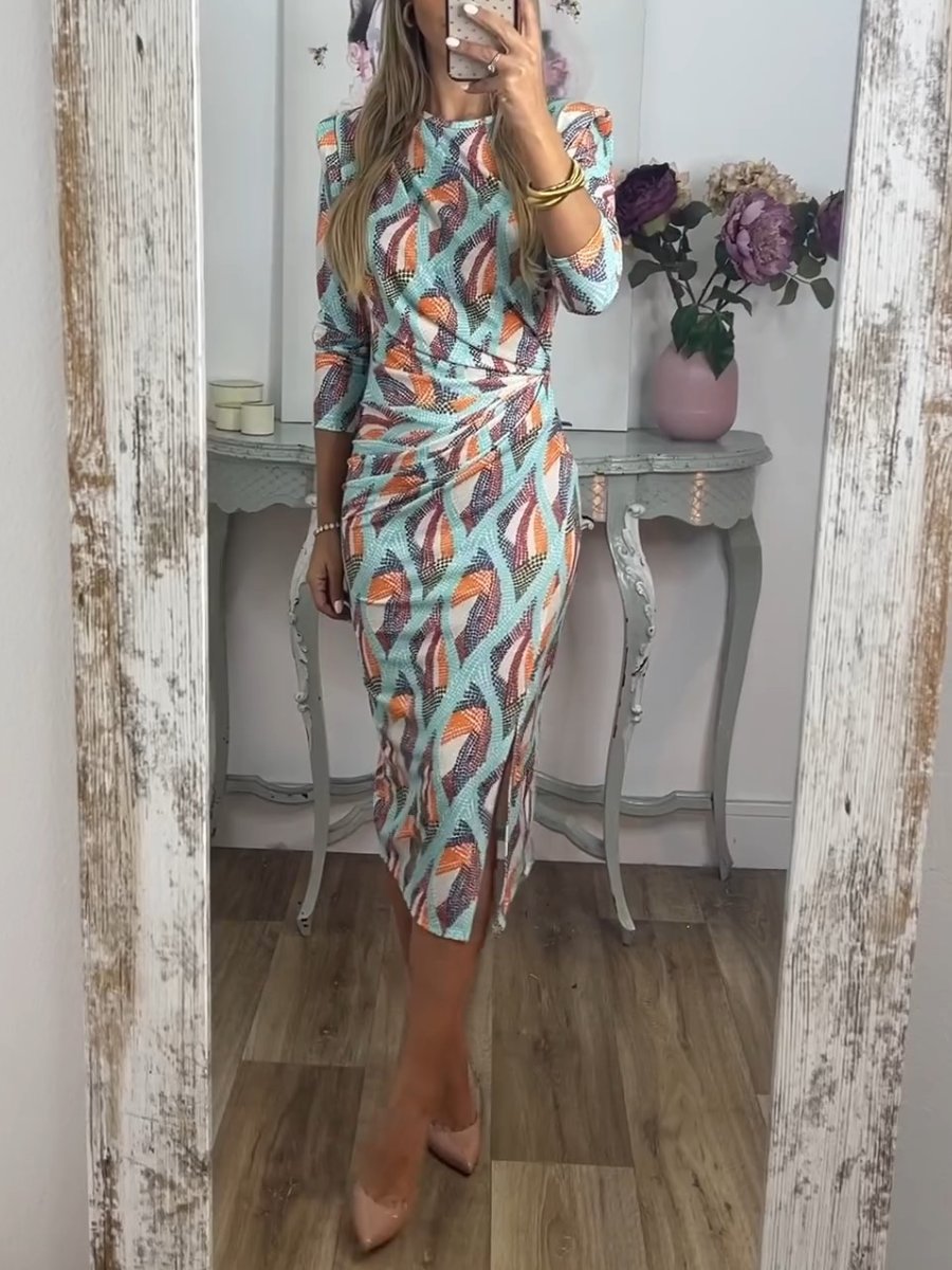 Verena | aansluitende jurk met lange mouwen en een ronde halslijn
