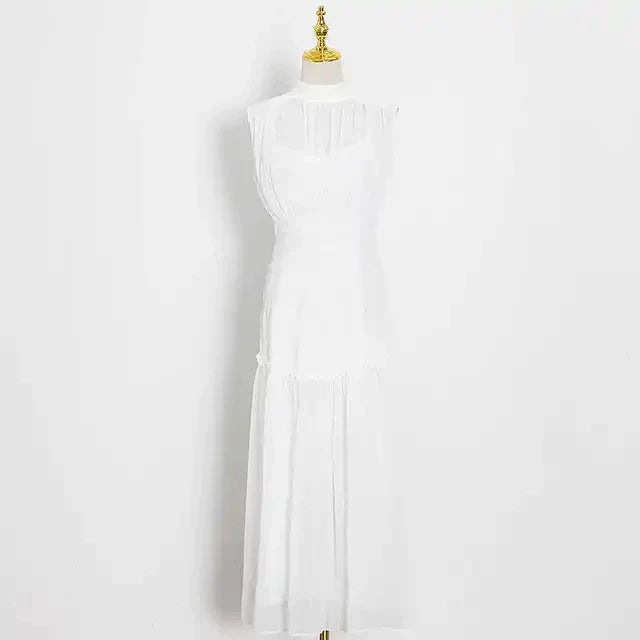 Viola | Gefaltetes Midikleid mit hohem Kragen
