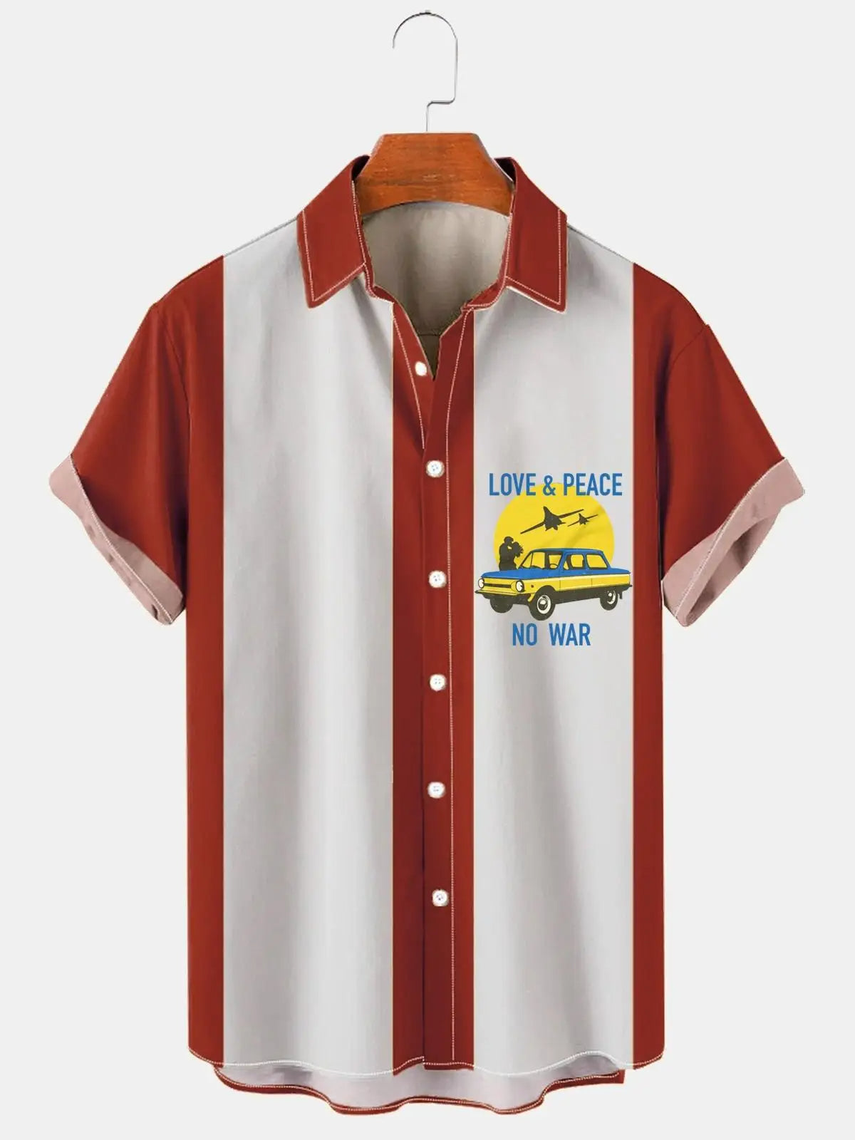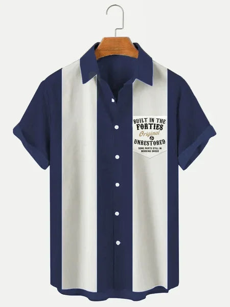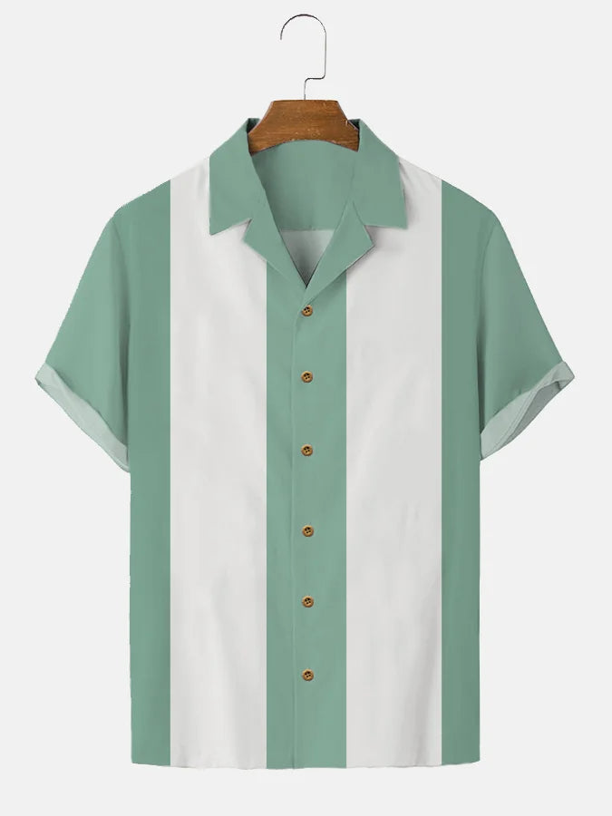 Zweifarbiges herren-kurzarmhemd mit streifendruck